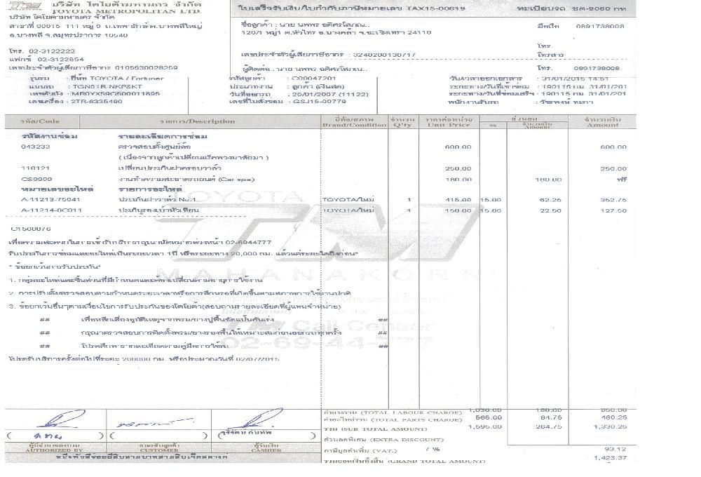 จากการคิดที่ผ่านมากับระยะทางสภาพการใช้งาน รถปี 2007 ปีนี้ 2015 แล้วที่ผ่านมาเราใช้งานรถอย่างมีความสุขและคุ้มค่ามากจึงว่าทำในศูนย์ทีเดียวเลย ถ้าเทียบกับรถ BMW ราคาแร๊ก 1.3 แสนบาท รถเบนซ์ 1.2 แสนบาท ถ้าเป็น Lexus RX300 60,000-83,000 กับของเรา 26,750 ผมเลยตัดสินใจเอาแลกกับเวลาเพื่อซื้อเวลาทำเลยดีกว่า ก็ต้องเข้าไปมัดจำอะไหล่ก่อน แต่เขาเรียกไม่เรียกมัดจำเพราะเก็บเต็มราคา ผมออกไปกดเงินสดกลับมาเปิด Job เพื่อสั่งของที่โตโยต้าอีกครั้ง ปรากฎว่าตกลงกันไม่ได้เรื่องส่วนลด 5555 คุยกันไม่ลงตัวหน้าเคาเตอร์ เลยดึงเงินกลับยกเลิกการสั่งของเลยตอนนี้ก็ไปหาของถอด...แล้วไปทำกับอู่แทน 5555 รายละเอียดไม่เล่าล่ะกัน คริ.... คริ