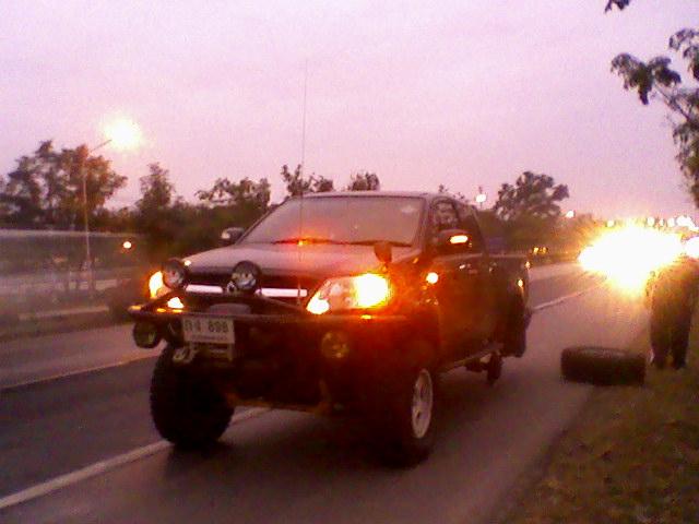 และค่อย ๆ เลี้ยงรถเข้าแอบข้างทาง ปรากฎว่าเหลือบไปเห็นล้อรถตัวเองวิ่งแซงรถไปครับพี่น้อง