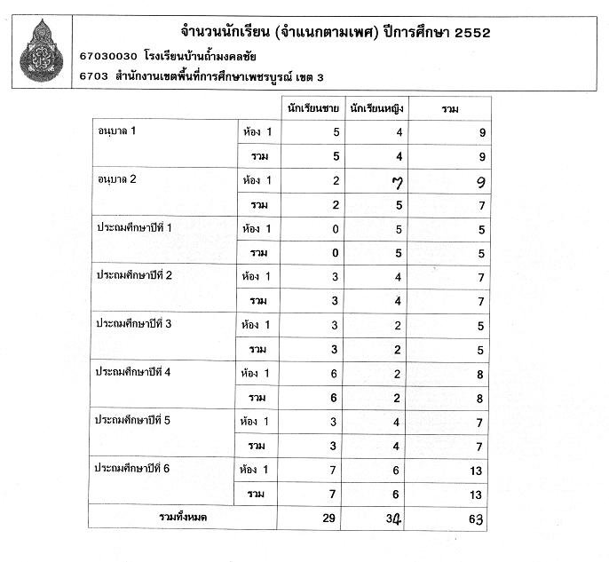 จำนวนนักเรียนแยกตามเพศและชั้นครับ