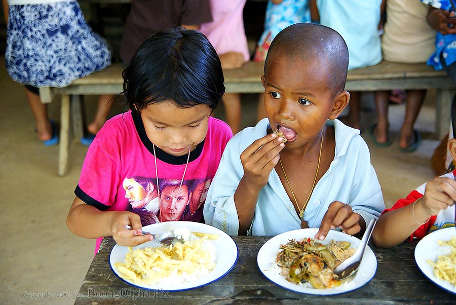 ก่อนทานอาหาร น้องๆที่นี่เขาจะร้องเพลง บุญคุณเข้าก่อนด้วยนะ...