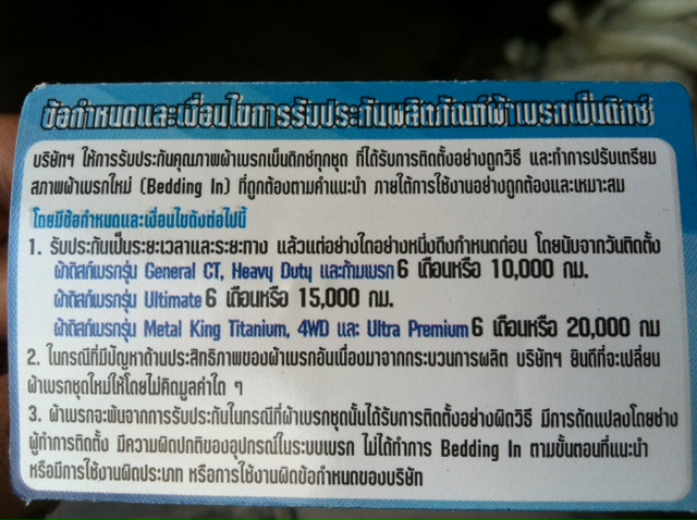 พอดีมีคูปองส่วนลดผ้าเบรค 20% ข้างหน้าเหลือ 2354 บาท รวมแวทแล้ว ก็เลยซื้อเอาไว้ก่อนเพราะคูปองจะหมดเขตสิ้นเดือนกพ.ปีหน้า เอาไว้ผ้าเบรคหมดแล้วค่อยเปลี่ยน ส่วนข้างหลังไม่มีของ( เป็นศูนย์ย่อย )