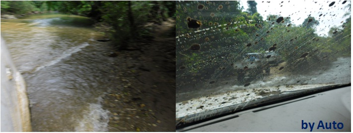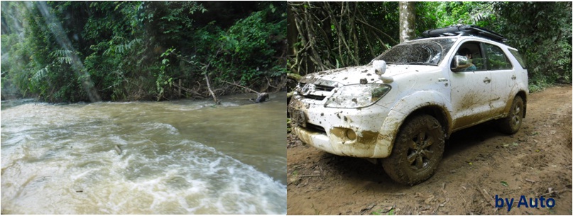 ขับรถย้อนสายน้ำแห่งทุ่งใหญ่ขึ้นไป โคลนติดหน้ากระจกต้องใช้ใบปัดน้ำฝนช่วยตลอดเส้นทาง