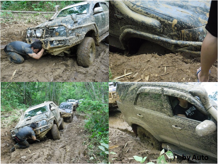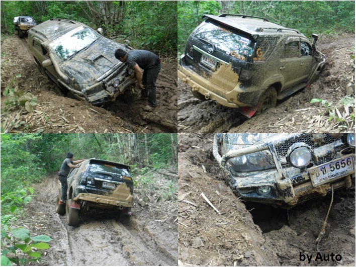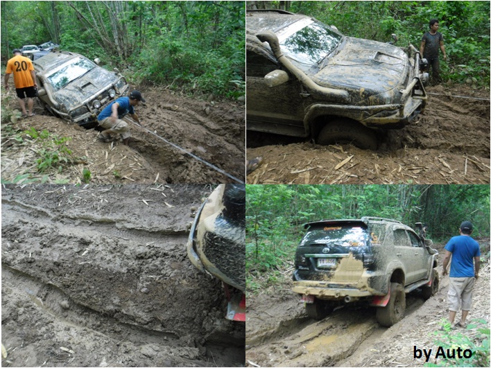 ทีมงานให้ถอยหลังกลับมาล้างล้อเอาโคลนออกจากล้อก่อน ที่จะ Winch และปั่นฟรีขึ้นไปใหม่