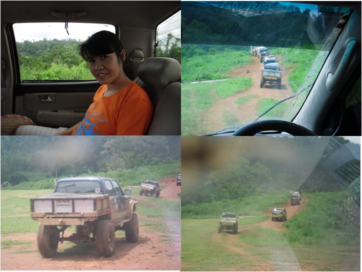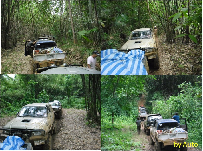 คันของพี่ดำรงที่ผมนั่งมาด้วย ก็นำหน้าถือโอกาสถ่ายรูปคันพี่นิพนธ์ซะเลย พี่นิพนธ์ขึ้นเนินเทวดาโดยการขับขี่ 4LL ขึ้นมาแบบเนียนให้ดู แล้วก็ไปออดอ้อนพิงอยู่ที่กำแพงดิน โชว์ให้ดูกันจะจะ จริง ๆ ก็ต้องขอบคุณกำแพงดินตรงนี้ถ้าไม่มีมันรถกระเด็นออกตกลงเหวลึกไปแล้ว
