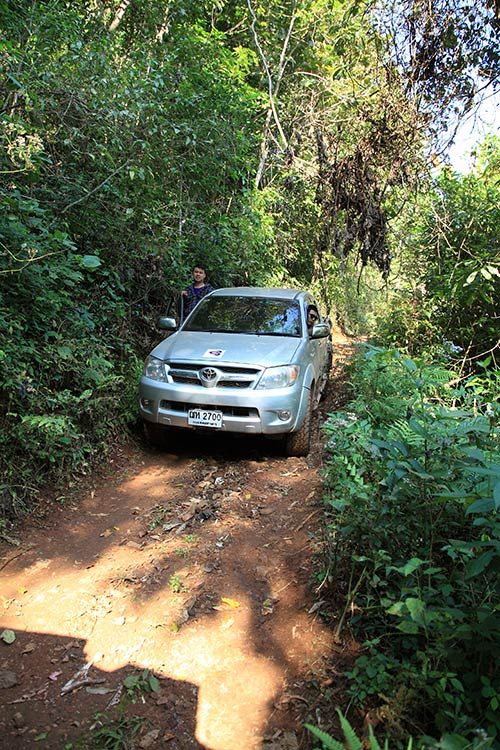 ลงเนินชันและหักศอกผ่านต้นไม้คู่ใหญ่ มีรถในกลุ่มหลุดไลน์คันนึง พอได้หวาดเสียวเล็กน้อย