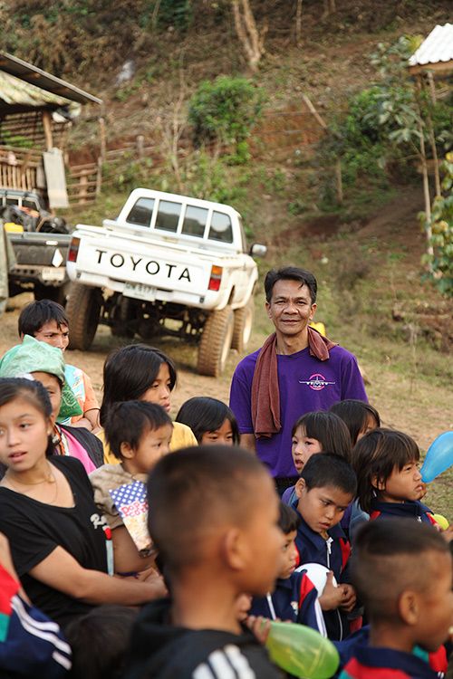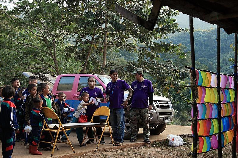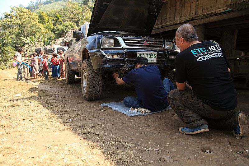รถก็ซ่อมกันไป ฝ่ายแจกก็แจกของเด็กๆอย่างมีความสุข