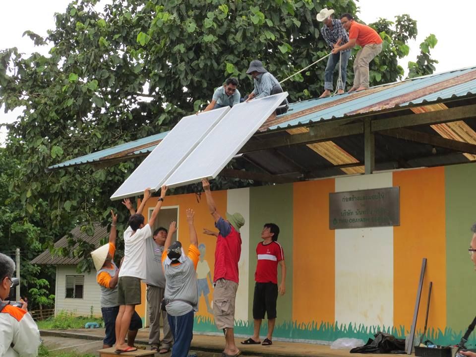 ช่วยกลุ่มลายไผ่ติดตั้งแผงไฟฟ้าพลังแสงอาทิตย์