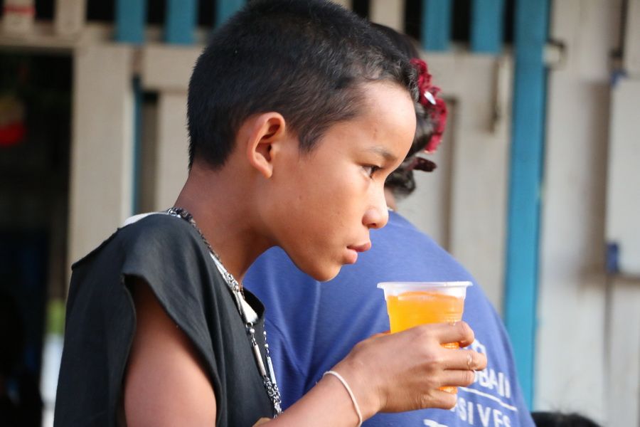 เข้าแถวรับน้ำอย่างเป็นระเบียบ ได้กันทุกคน