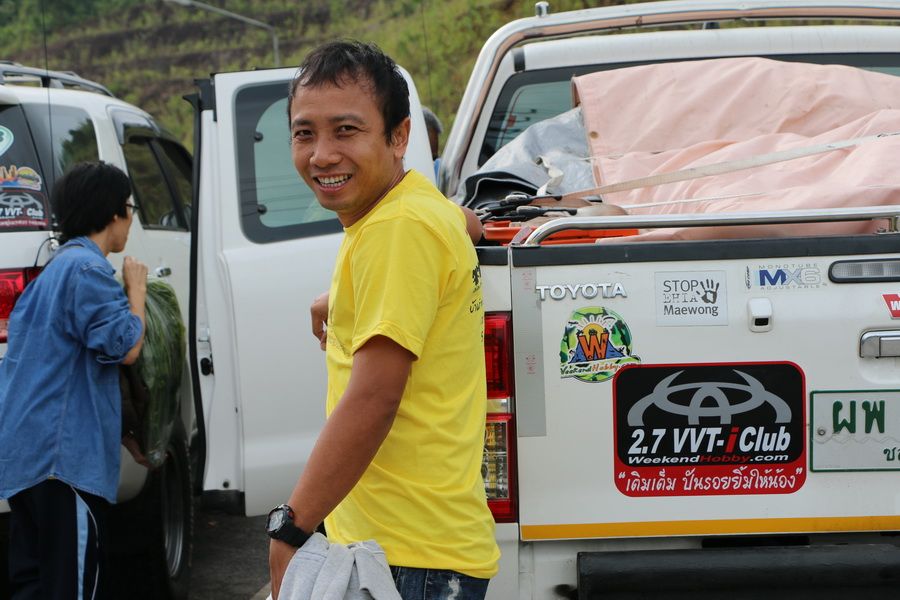 สเบียงทุกอย่าง ทั้งผลไม้ เครื่องดื่ม อาหารกลางวัน ผักสด ต้องเป็นภาระของรถวางคานคันนี้ (คันอื่นเต็มเอี๊ยดๆ)