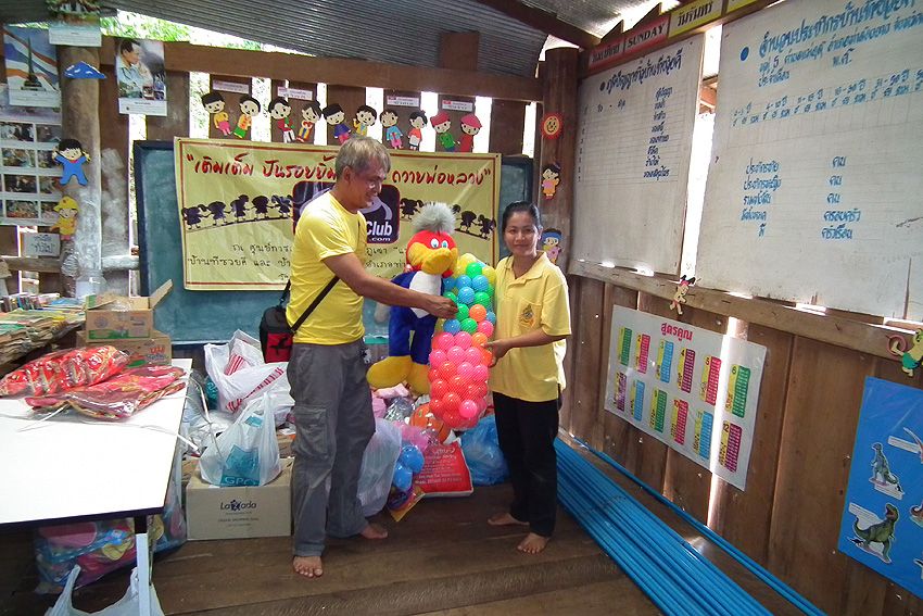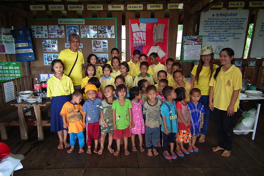 ขวามือคือคุณครูผู้เสียสละสอนหนังสือแก่เด็กๆ วันนี้วันหยุดก็ยังเสียสละเวลามาต้อนรับพวกเรา