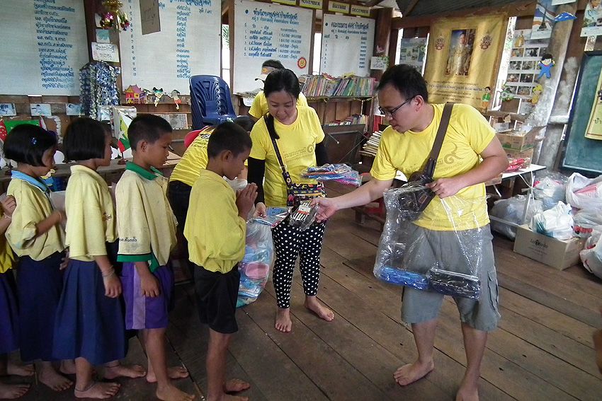 ชื่อโคงการประจำทริปนี้ "เติมเต็ม ปันรอยยิ้มให้น้อง" สติ๊กเกอร์แผ่นโตๆบนหลังรถคุณ R.400
