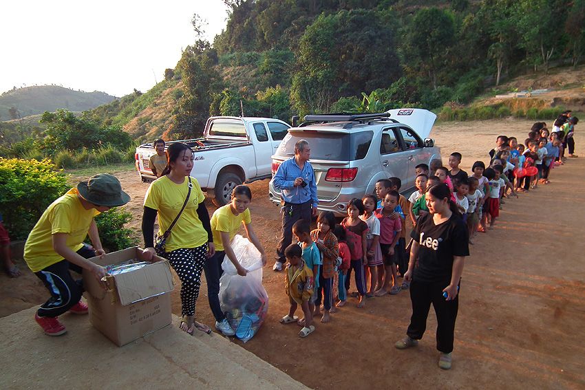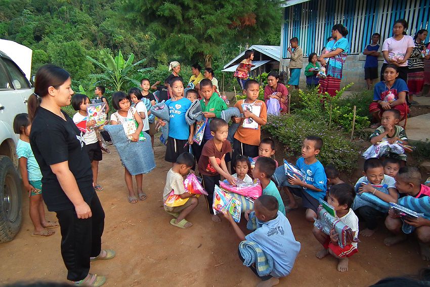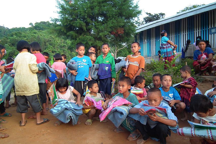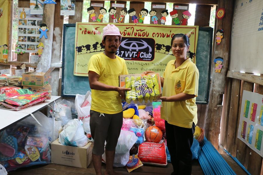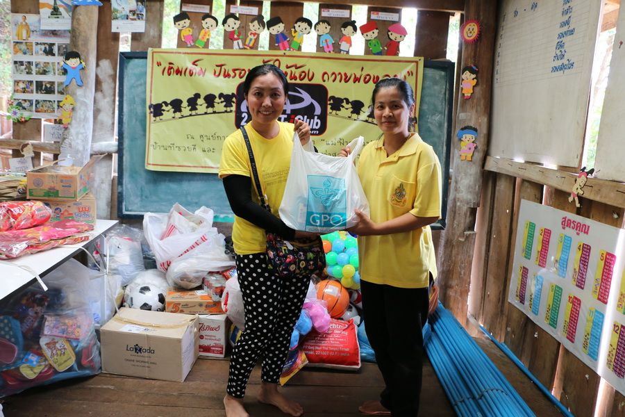 มอบกระเป๋าเด็กและรองเท้าแตะ