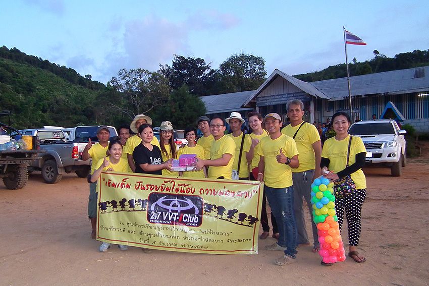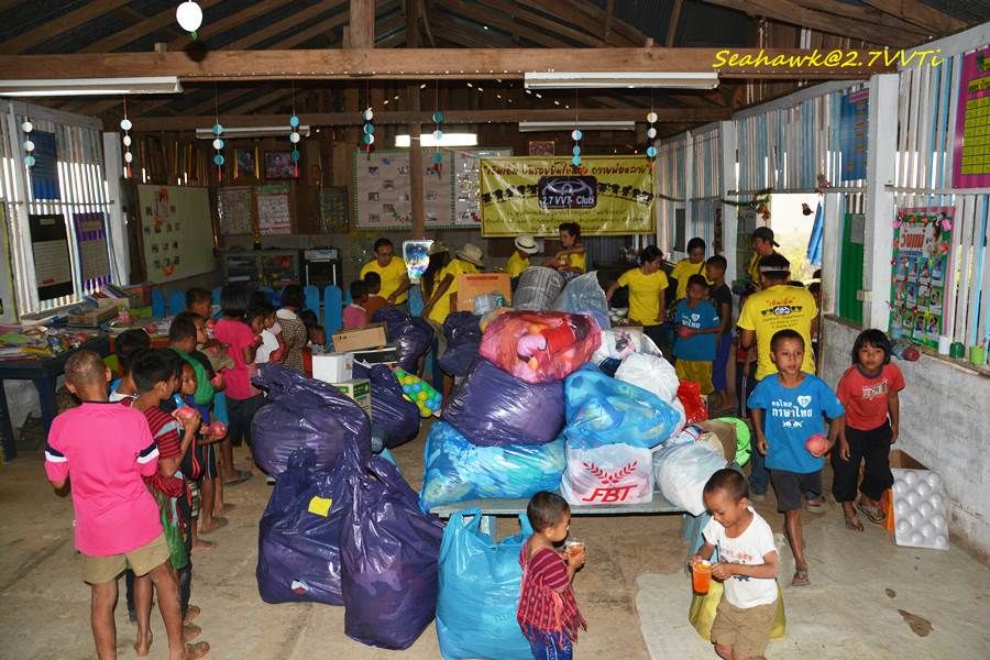 สมาชิกร่วมแรงช่วยกันแจกขนม ผลไม้ น้ำแข็ง น้ำอัดลม เด็กโรงเรียนนี้ประมาณ 60 กว่าๆ