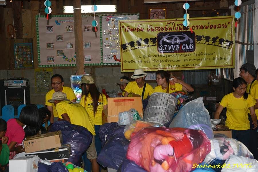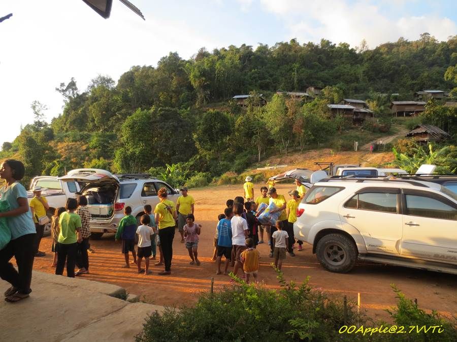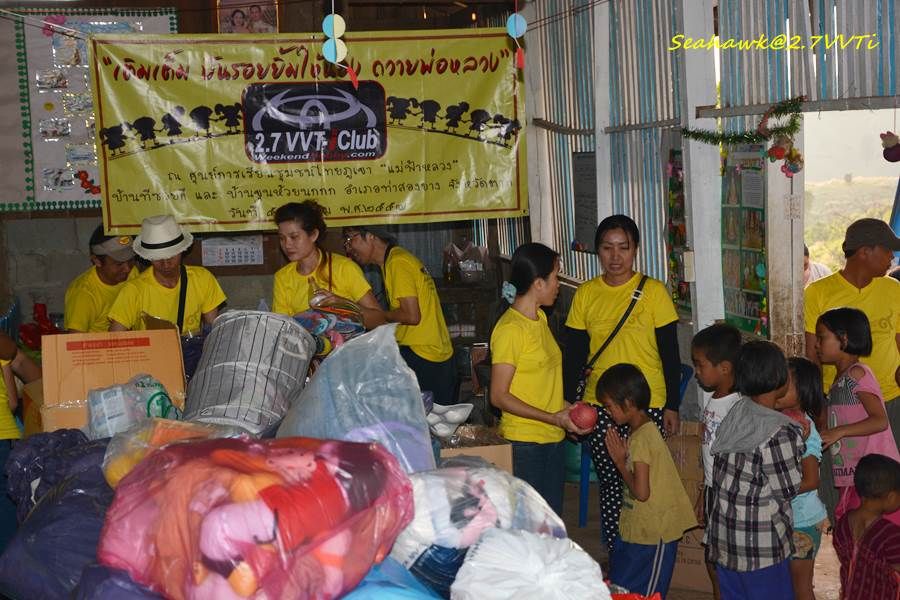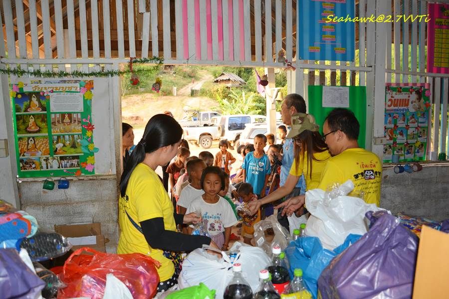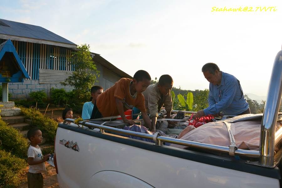 มาถึงโรงเรียนขุนห้วยนกกก ก็เย็นมากแล้ว รีบช่วยกันขนของบริจาคลง