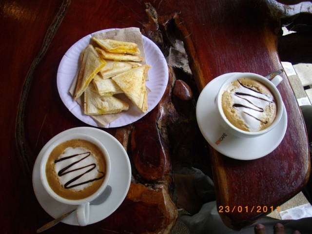 แวะกินกาแฟก่อนครับ ร้านนี้บริการดี บรรยากาศก็ดี ถ้าจำไม่ผิดชื่อร้านเกอแล ทางผ่านครับ