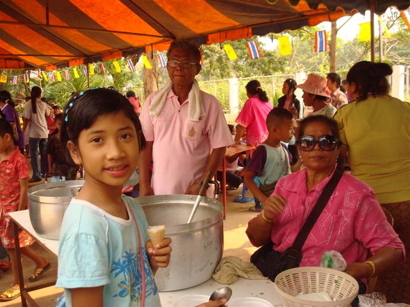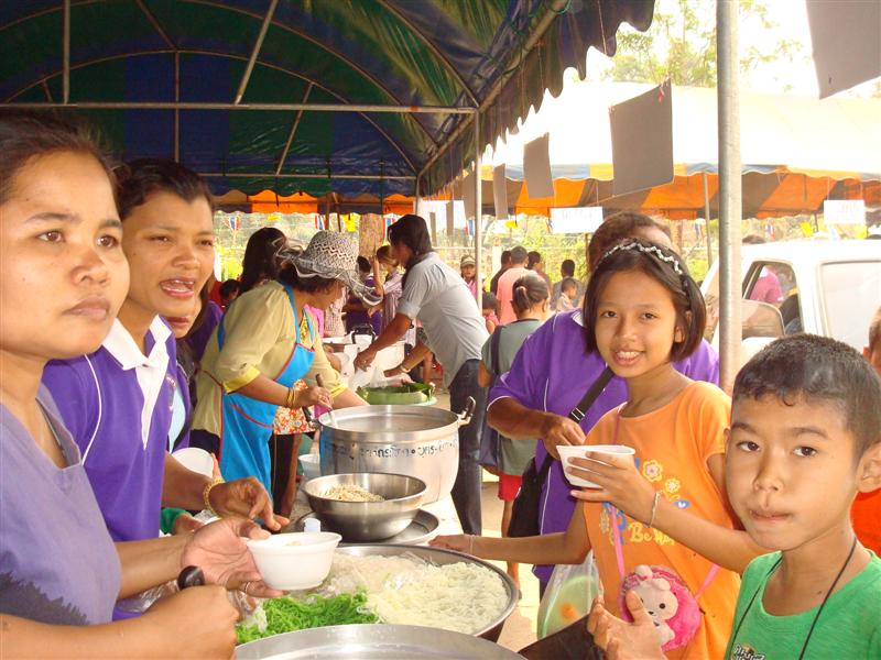 ฟ้าใสก็หิวค่ะ..กินฟรี.ชาวบ้านทำอาหารมากมาย..มาให้คณะที่มาร่วมก้นทอดผ้าป่าได้รับประทาน..อร่อย..