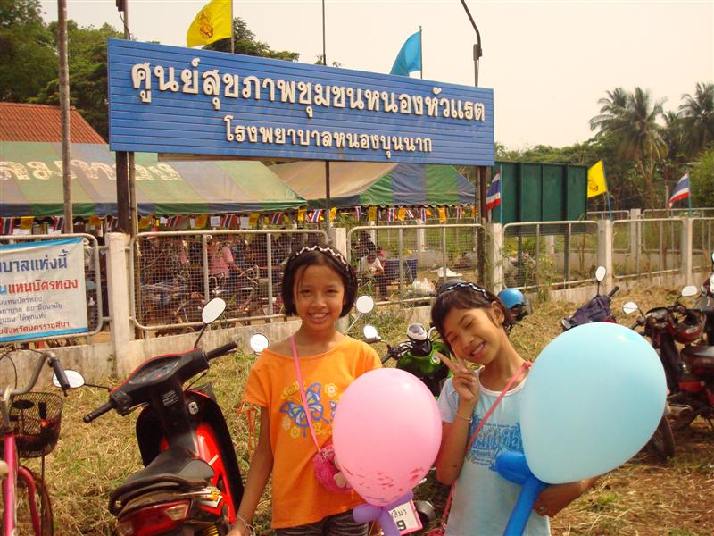 พลอยสาว.ฟ้าใส..นำเงินที่ได้รับบริจากไปทอดผ้าป่าที่สถานีอนามัยหนองหัวแรด..ให้กับเจ้าหน้าที..