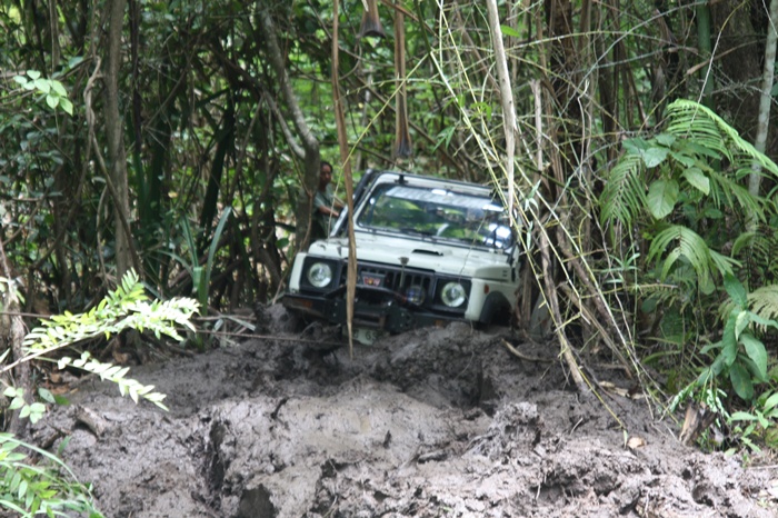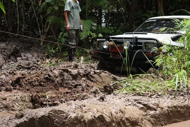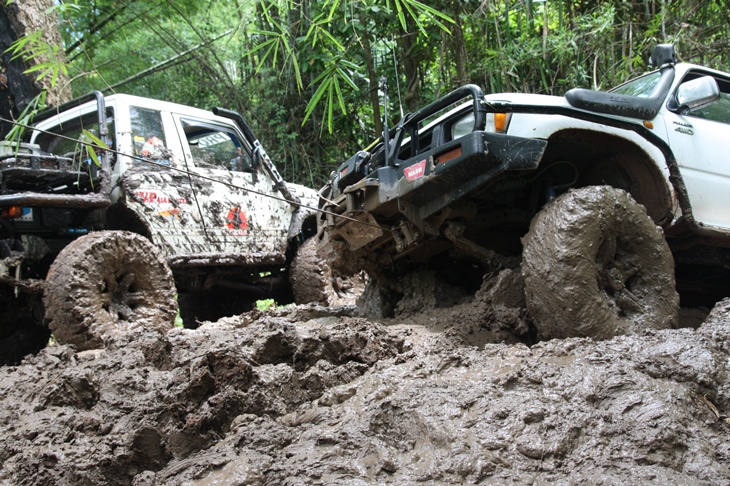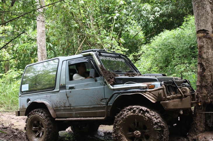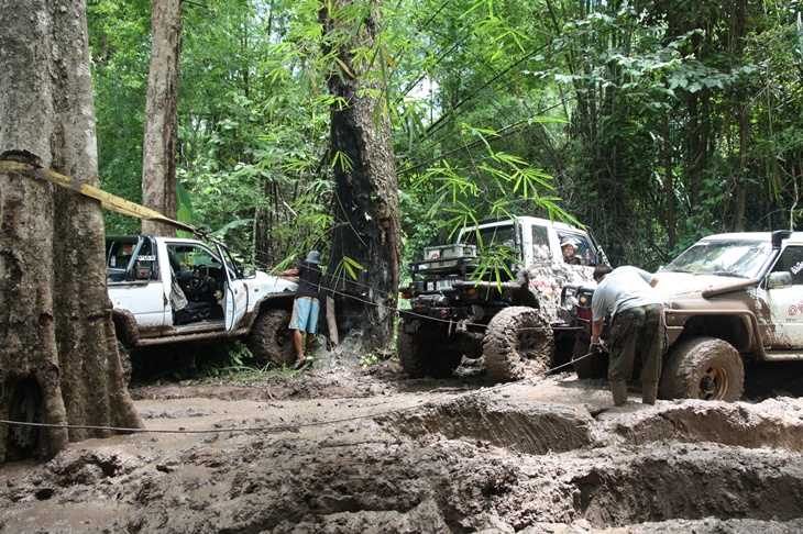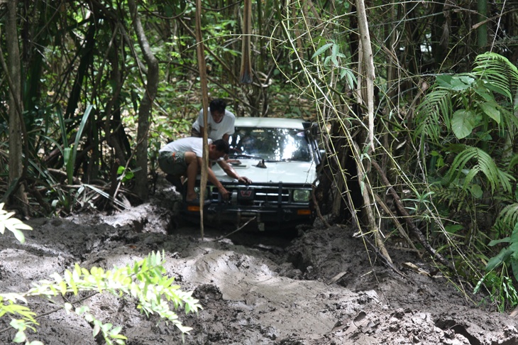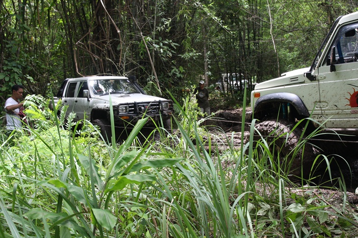 ขับเข้ามาถึง "โป่งตะแบก" ก้เหง ทีมคนเน่อกำลังปั่นเล่นโคลนกันมันส์เชียว