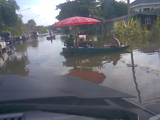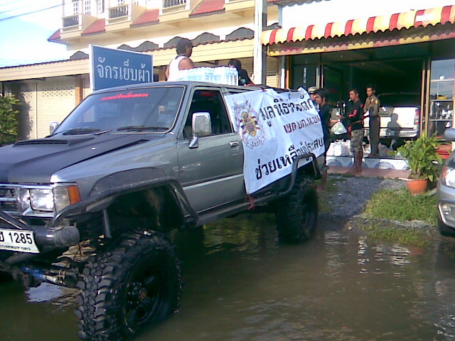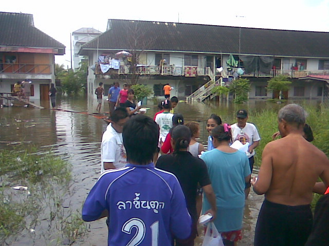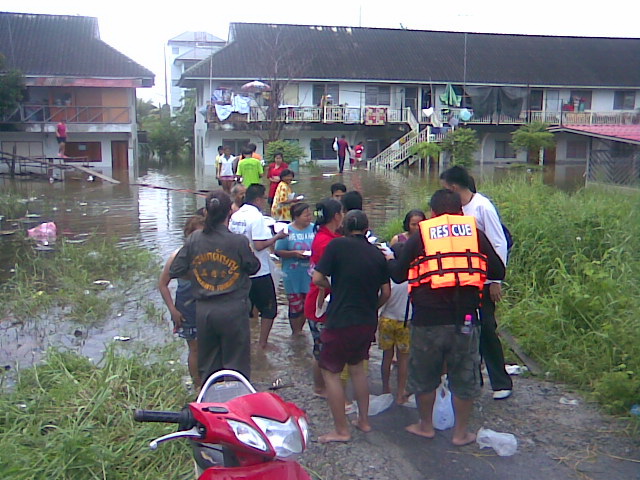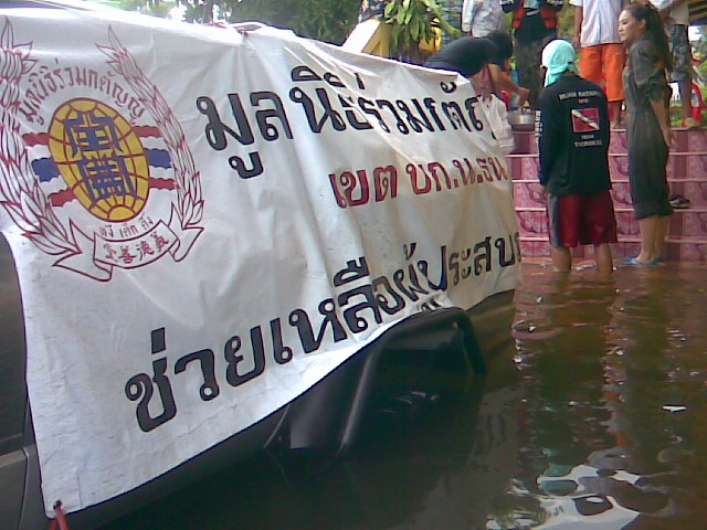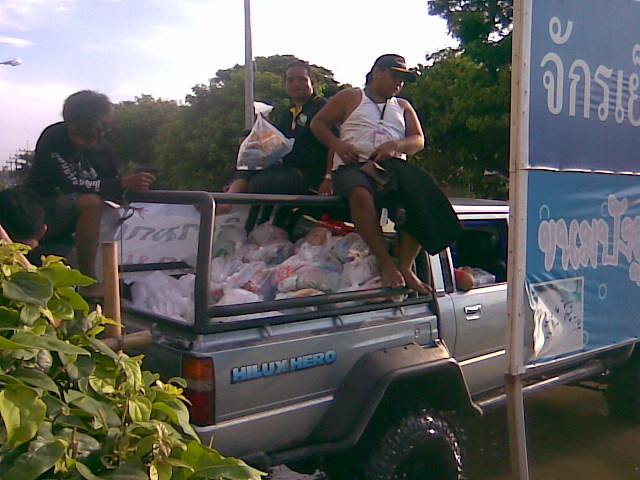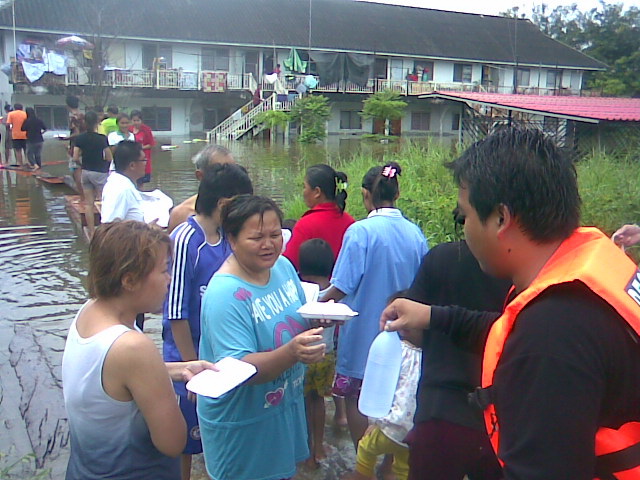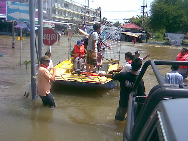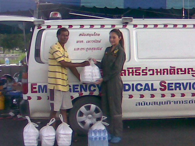 ไปมอบให้ผู้ประสบภัยน้ำท่วม โดยเข้าพื้นที่ที่สามารถเข้าได้ และจากนั้น จะมีเรือพื้นที่มารับไป