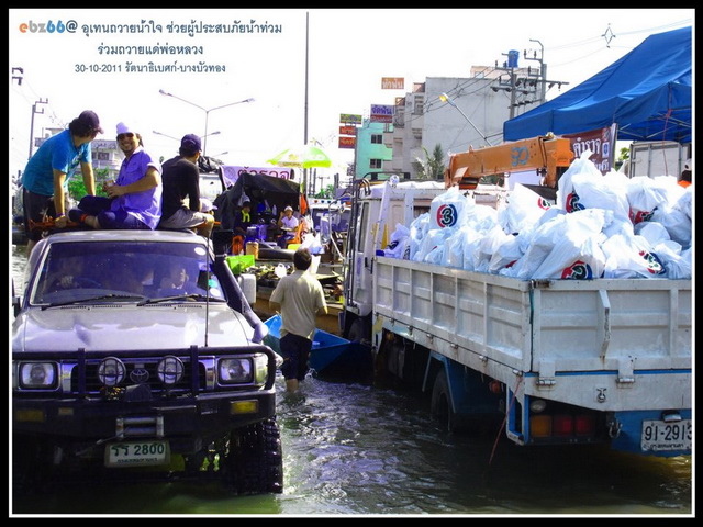เคียมเล ร่วมกับ ช่างก่อสร้างอุเทนถวายช่วยเหลือผู้ประสบอุทกภัยที่บางบัวทอง