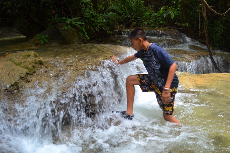 มาถึงเร็วก็เดินขึ้นไปเที่ยวน้ำตก ส่วนมากถ้ามาแล้วจะขึ้นทุกครั้ง เส้นทางก่อนถึงชั้น 1 ก็เจอลำธารแล้ว