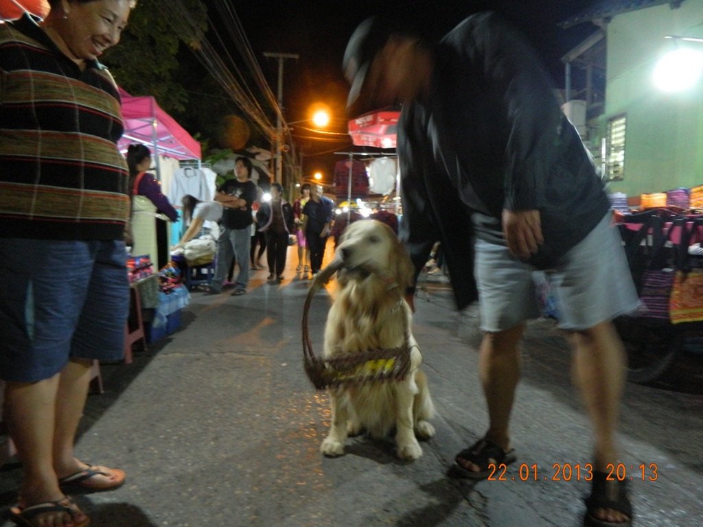 เจ้าลักกี้คาบตะกร้าเดินชอปปิ้ง เห็นภาพอย่างนี้ประทับใจความฉลาดของเจ้าลักกี้ พอวันต่อมาทราบข่าวว่า มันได้ตายแล้ว (เห็นแล้วคิดถึง)
