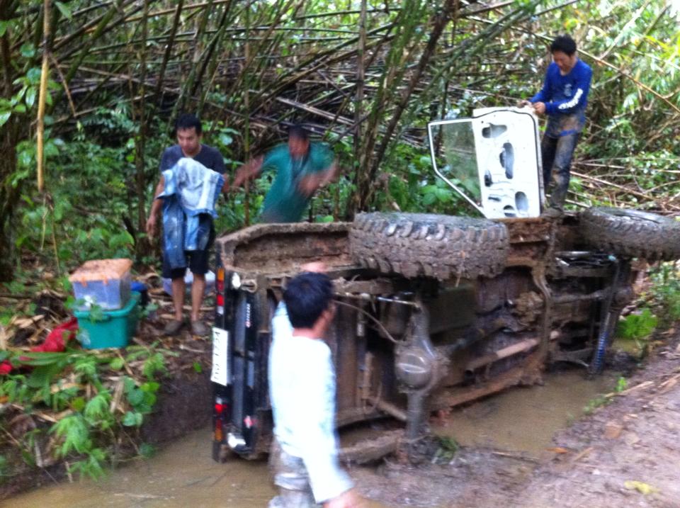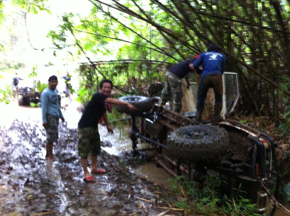ขึ้นจากหลุมมาได้ทุกคันก็ไปต่อ และแล้วก็คว่ำโชว์ต่อเลยอิอิ