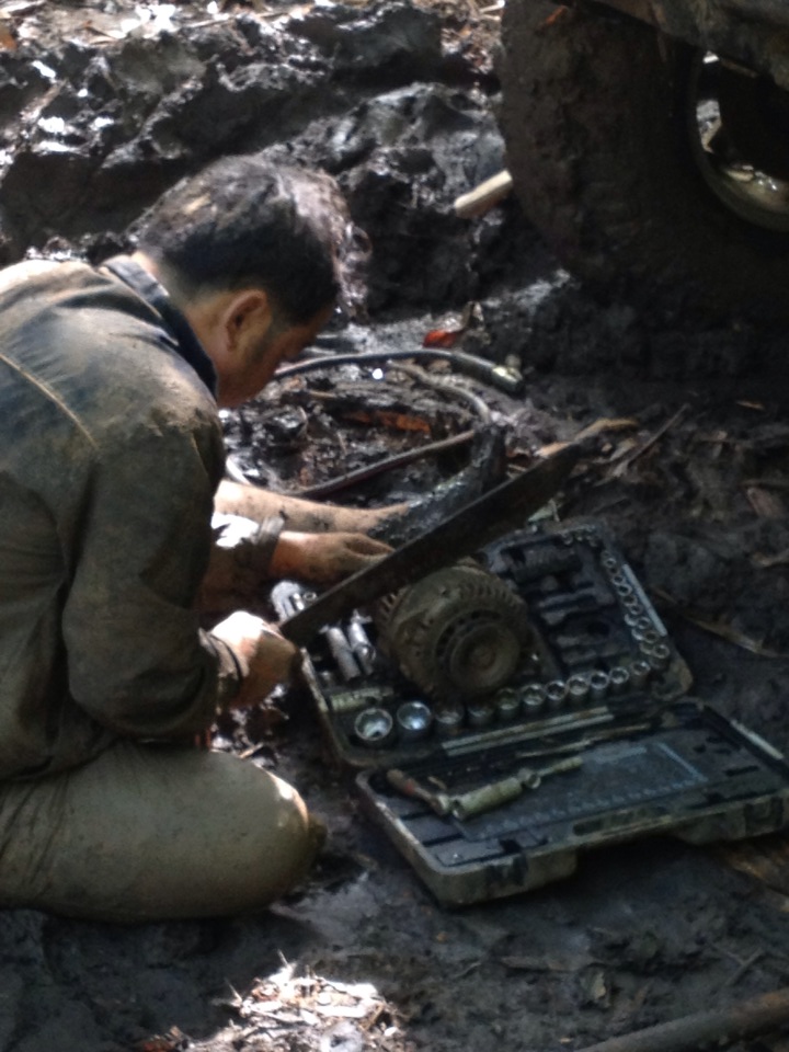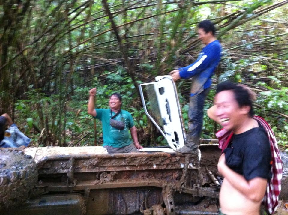ช่วยกันเก็บข้าวของเตรียมตัวดึงรถแล้วไปต่อครับ