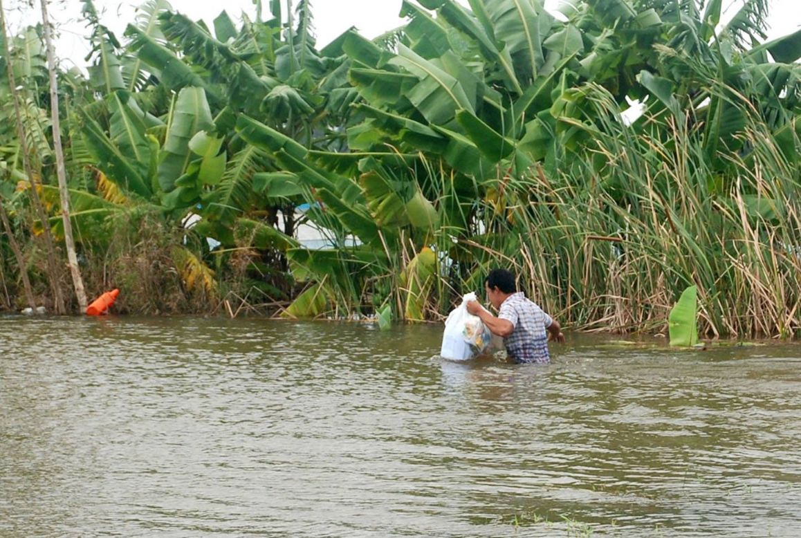บรรยากาสของชาวบ้านพายเรือออกมารับขอลบริจาก จากน้ำใจพี่น้องชาวแท็กชี่ และกลุ่มพี่ๆ 22.น และพี่ร่วมเดินทางด้วยครับ