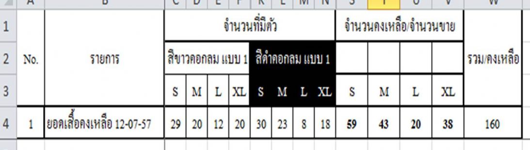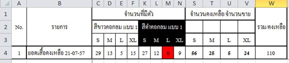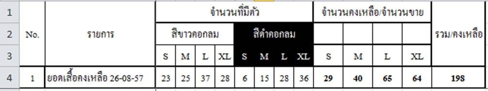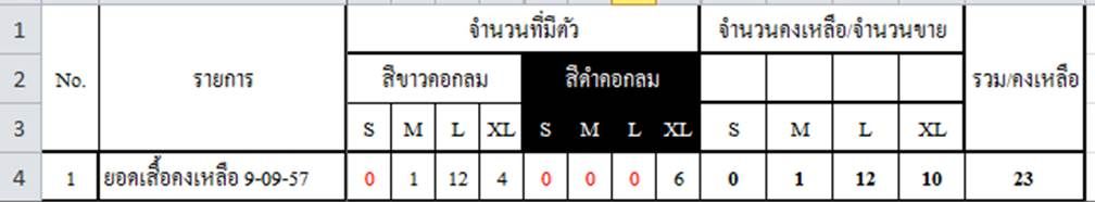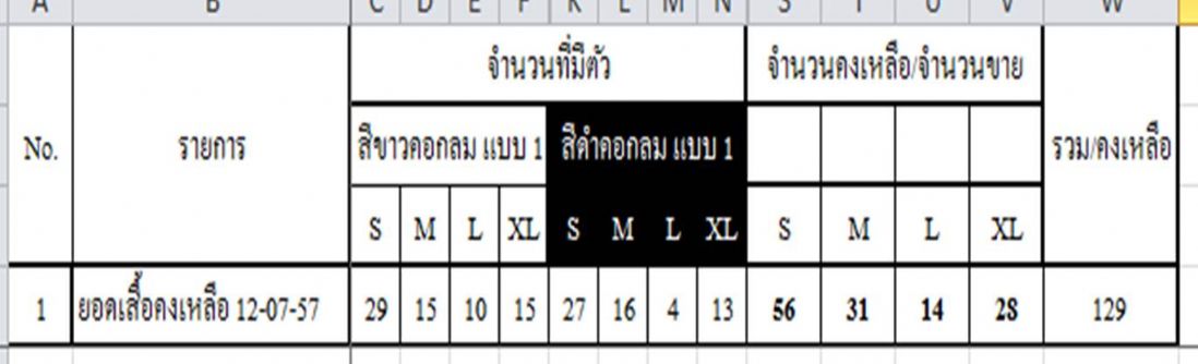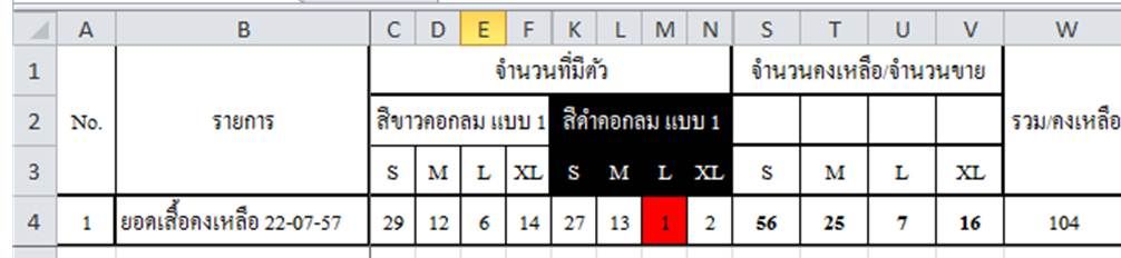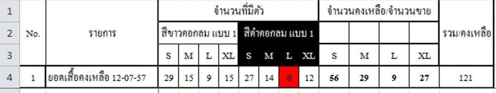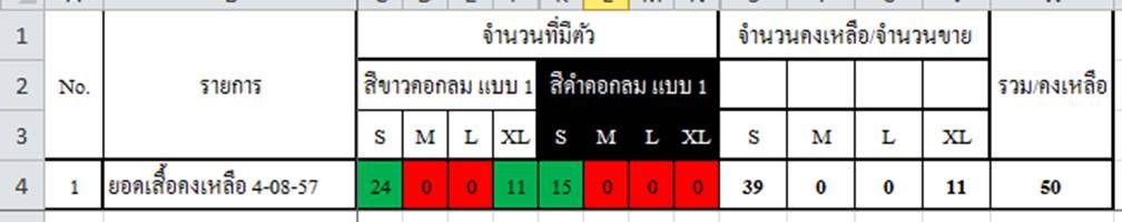 ขนาด สี และ จำนวนคงเหลือ ณ วันที่ 5/8/57
