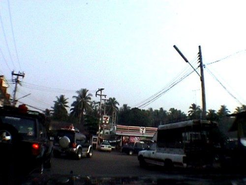 รุ่งขึ้นแปดโมงเช้า กลุ่มเราก็ฝากท้องไว้กับร้านข้าวแกงรสเด็ด อยู่ติดถนน ก่อนทางเลี้ยวซ้าย ไปที่พัก ร้านนี้อร่อยเด็ดถึงเครื่องจริง ๆ ระดับฉลามขาว กุ๊กใหญ่ของเรายังชมเปาะคนเดียวฟาดไปสามจานรวด โดยเฉพาะผัดพริกหน่อไม้ กับแกงเขียวหวาน ส่วนโกกุยเจอดีต้องไปปะยางแต่เช้า เพราะยางโดนตะปูรั่ว ได้ข่าวว่าจะขายยางสี่เส้นนี้อยู่รอมร่อราคาเลยตกไปในพริบตา เมื่อครบขบวนแล้ว ก็ออกเดินทางแวะตลาดซื้อของเล็กน้อย ก็มุ่งหน้าสู่เส้นทางอำเภอ สังขละบุรีทันที