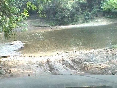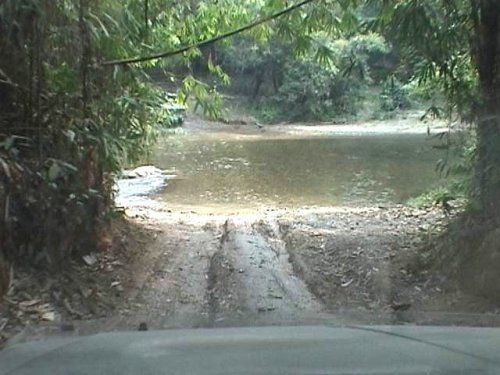 เริ่มเข้าเขตรักษาพันธ์สัตว์ป่าพวกเราให้รถริชาร์ดนำขบวน เพราะเป็นรถที่มีสัมถนะสูงที่สุด (ถ้าริชาร์ดไปไม่ได้ พวกเราก็กลับกันเถอะ เป็นคำพูดอยู่ตลอดทริปการเดินทาง) เส้นทางเป็นดินลูกรังปนทราย มีหินกรวดทั้งใหญ่เล็กสลับกันไป บางช่วงเป็นร่องลึก ต้องดูไลน์กันพอสมควร แต่ก็มีทางราบ สลับอยู่บ้างทำให้พอทำความเร็วได้ ข้ามห้วยแรกไม่ลึกมากประมาณครึ่งล้อ วิ่งมาเรื่อย ๆ จนถึงด่านตรวจการลักลอบล่าสัตว์ป่า หน่วยพิทักษ์ป่าสะเนพ่อง (ตรงนี้ต้องลงเซ็นต์ ชื่อกันหน่อยนะจ๊ะ เจ้าหน้าที่จะปล่อยรถเข้าทีละ 3 คัน ทุก 10 นาที เพื่อป้องกันสัตว์ตื่น และ ง่ายต่อการสันจรของชาวบ้าน) พ้นจากด่านไปเส้นทาง เริ่มยากขึ้น ป่าเริ่มทึบขึ้น ห้วยสอง ที่เจอดูเหมือนเป็นหลุมโคลนมากกว่าห้วย ทางลง มีหลุมซ้ายค่อนลึกแต่ก็ผ่านได้ด้วยดี แต่ก็เล่นเอาล้อหลังชี้ฟ้ากันทุกคันนะ ผ่านห้วยที่สาม จะมีขอนไม้ใหญ่ ขวางก่อนทาง ลงห้วยและ มีหินก้อนใหญ่อยู่ด้านซ้ายต้องลงไปดูไลน์ ต้องใช้วิธีหยอดกันพอสมควร แต่ก็ผ่านไปได้ทุกคัน หลังจากนั้นมีการข้าม ห้วยอีกหลายต่อ หลายห้วย มีบางห้วยที่เป็นร่องน้ำลึก แต่ก็ใช้วิธีเลี่ยง เส้นทางรถไปยังด้านน้ำตื้นทำให้ไม่จมเพราะมีรถบางคันไม่ได้ติดสน็อกเกิ้ล อาจจะดับกลางน้ำได้ เส้นทางขับรถไม่ยากไม่ง่ายเกินไปสนุกสนานพอสมควรมีการดูไลน์เป็นระยะ ๆ