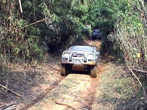 ก็เลยให้ตัดสินใจกันว่าจะไปต่อหรือไม่เพราะห่วงคุณเจี๊ยบที่กำลังท้อง 4 เดือน แต่คุณเจี๊ยบบอกว่าไม่มีปัญหา พร้อมกับเสียง ส่วนใหญ่เห็นว่าน่าจะไปกันต่อเพราะเป้าหมายเราคือบ้านทิไล่ป้า ซึ่งเป็นเขตชายแดนติดกับประเทศพม่า เดินทางกันต่อไปเรื่อย ๆ เส้นทางยากบ้างง่ายบ้างสลับกันไป จะมีทางร่องน้ำเก่าลึกบ้างพอสมควร ถ้ารถเดิม ๆ ไม่ได้มีการยกสูงเลยอาจติดได้ในบางจุด บางช่วงมีต้นไม้ล้มขวางทางให้รถลอดผ่าน ให้เสียวเล่นๆ บางคันผ่านไม่ได้สูงไปต้องใช้ทางเบี่ยงด้านข้าง รอบ ๆ เส้นทางเป็นป่าทึบร่มรื่น ช่วงนี้ได้ขัดสมุนไพรกันพอสมควร