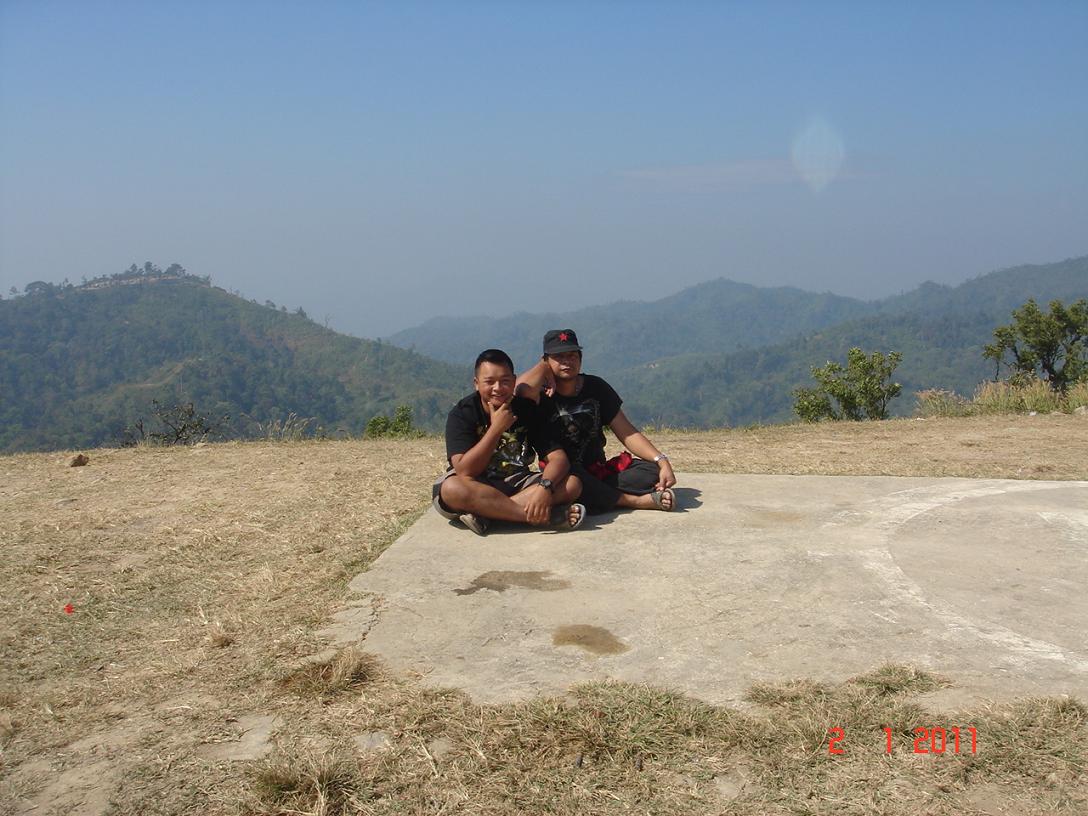 ลานจอด ฮ. เขากระโจม ภาพข้างหลังคือ ประเทศพม่า ยอดเขาที่เห็นน่าจะเป็นฐานของทหารพม่า