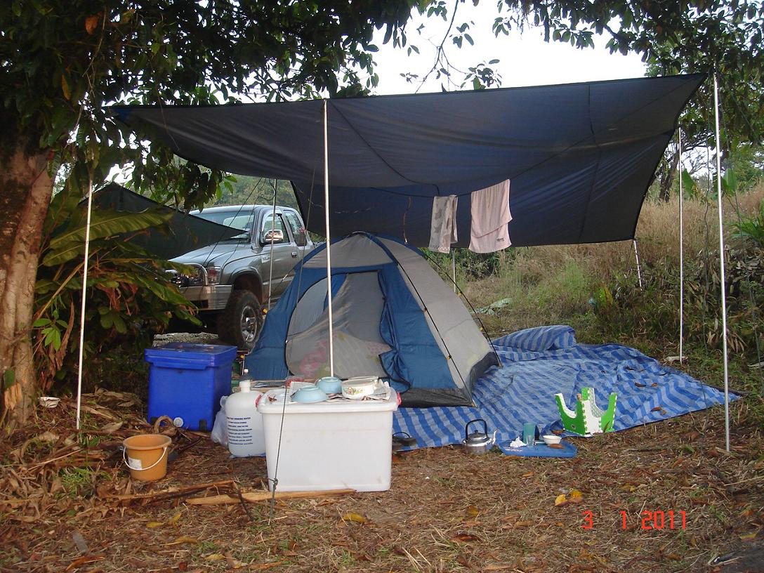 ลานกางเต๊น มองจากตรงที่พัก ตอนเที่ยง แทบจะไร้ผู้คน