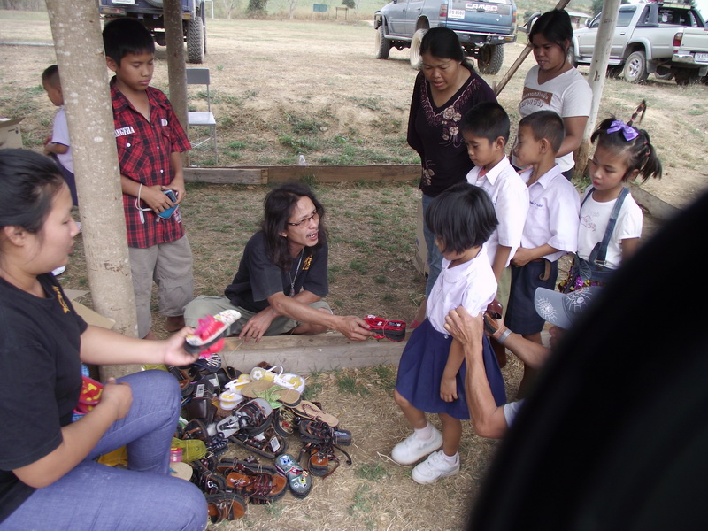 มาถึงการแจกรองเท้าให้แก่น้องๆ ที่พี่ใจดีอย่างโกเป้งเพื่อนคลับขนกันมา 100up