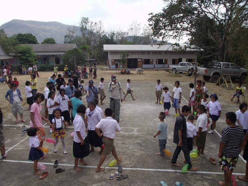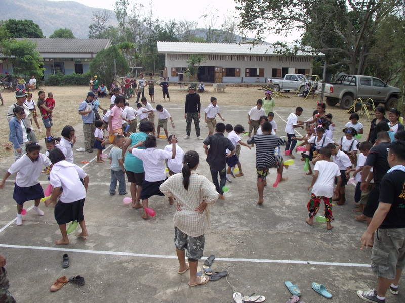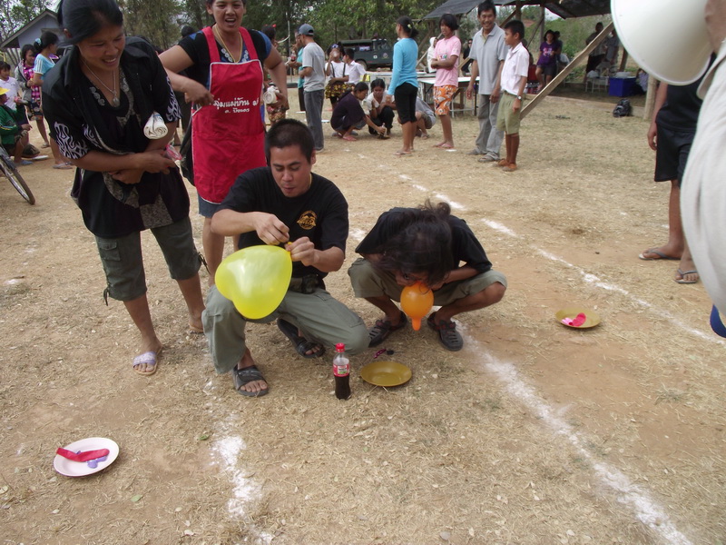 กับเกมที่พี่ๆจัดให้ เหยียบลูกโป่งครับ