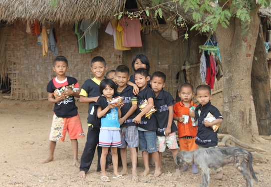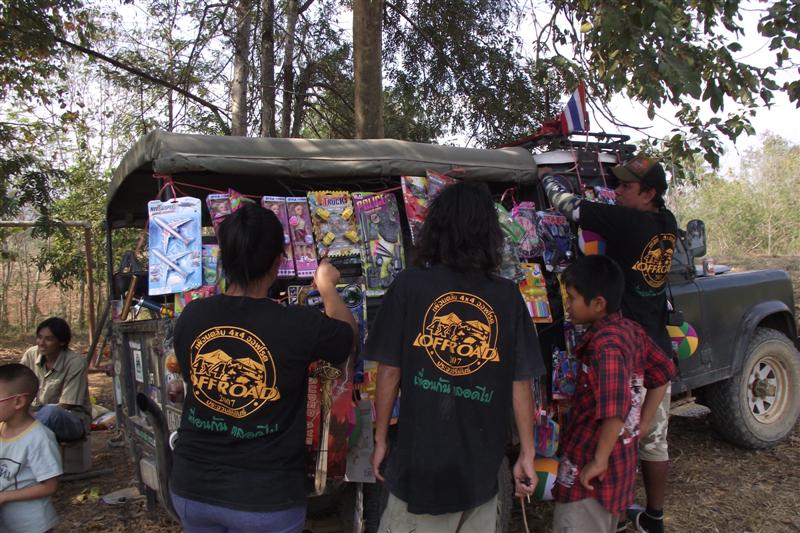 นำสิ่งของแจกเด็กๆ หลังจากเข้าไปเที่ยวในหุบกาฮัง