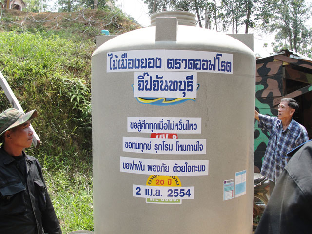 พี่ๆ กลุ่มไม้เมืองยอง นำโดยพี่อ้วน คนจร ....นำถังน้ำขนาดใหญ่่...มามอบเป็นขวัญกำลังใจแก่เหล่าทหารชายแดนที่..เนิน400 ครับผม..
