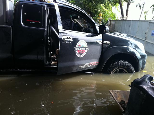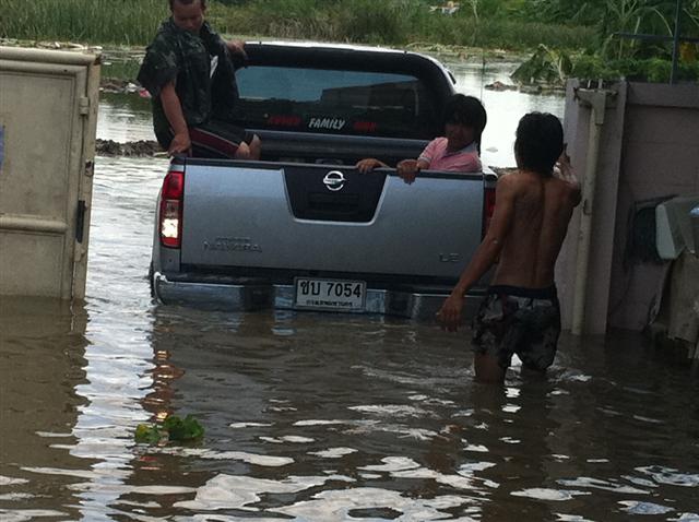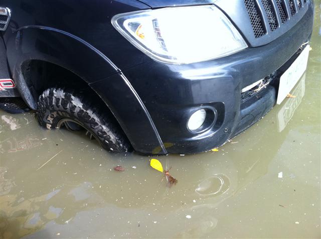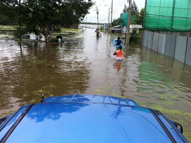 อันนี้จอดบนเนินนะครับ ถนนท่วมประตู