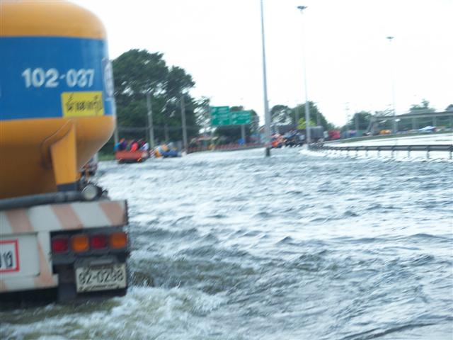 ช่วง มหาวิทยาลัยจุฬาภรณ์ ตรงวงแหวน น้ำสูงระดับ คอ หรือสูง 1.40 เมตร ท่วม ยาง36