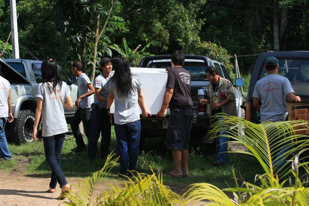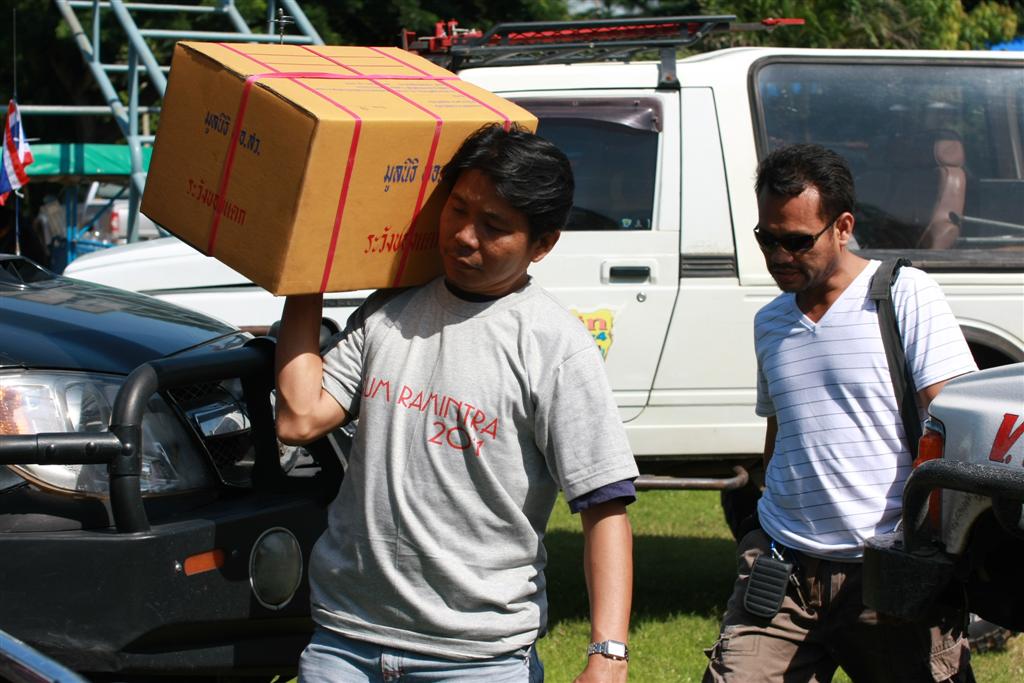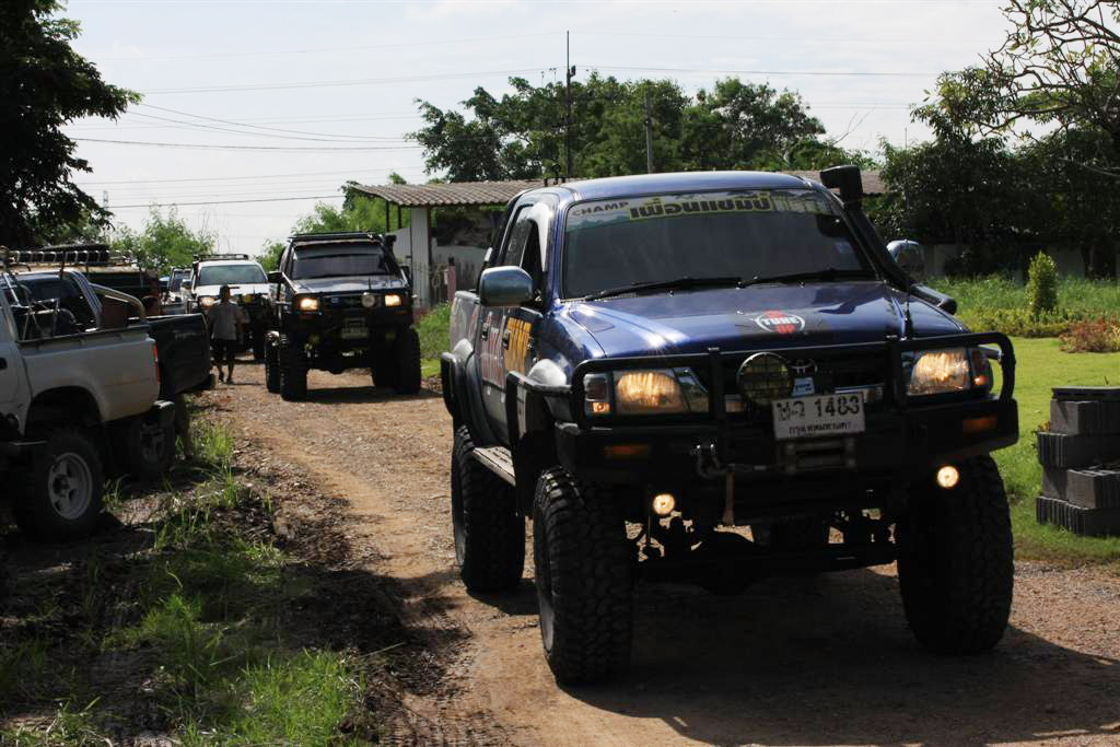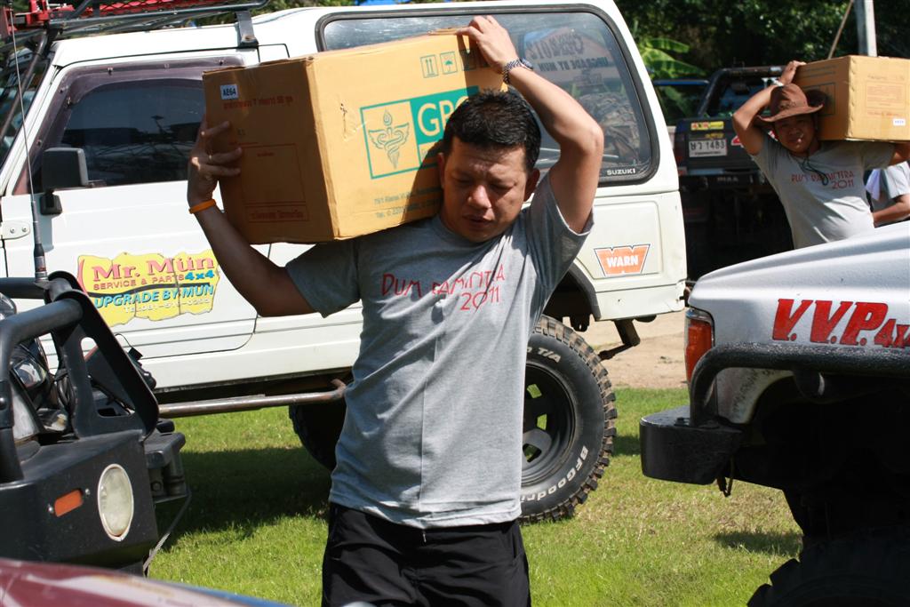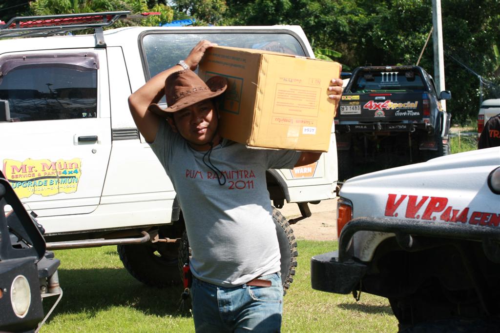 ขบวนออฟโรด ประมาณ 50 กว่าคัน เริ่มทะยอยนำสิ่งของมาบริเวณโรงเรียน