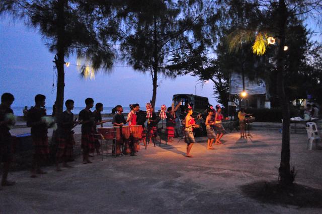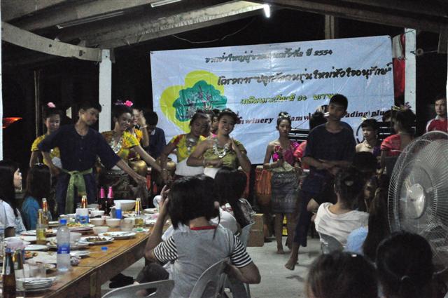 ยามเย็นที่บ้านคุ้งโตนด และชุดนักเรียน จากโรงเรียนหนองพลับวิทยา ที่จะมาแสดงศิลปวัฒนธรรมให้พวกเราชม เพื่อเป็นการ