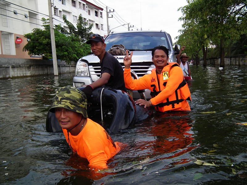 ยังไม่ทว่มบ้าน แต่ทางเข้ามีน้ำขังนิดหน่อย ช่วงนี้ก็ออกช่วยเขาก่อน แล้วสักวันคงถึงคิวเรา