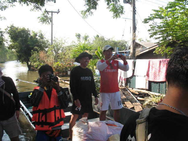 แบ่งของบางส่วน แล้วก็ออกเรือไปตามบ้านโดยมีผู้ช่วยผู้ใหญ่บ้านนำไป