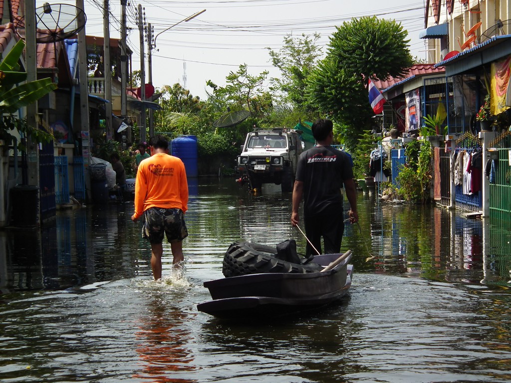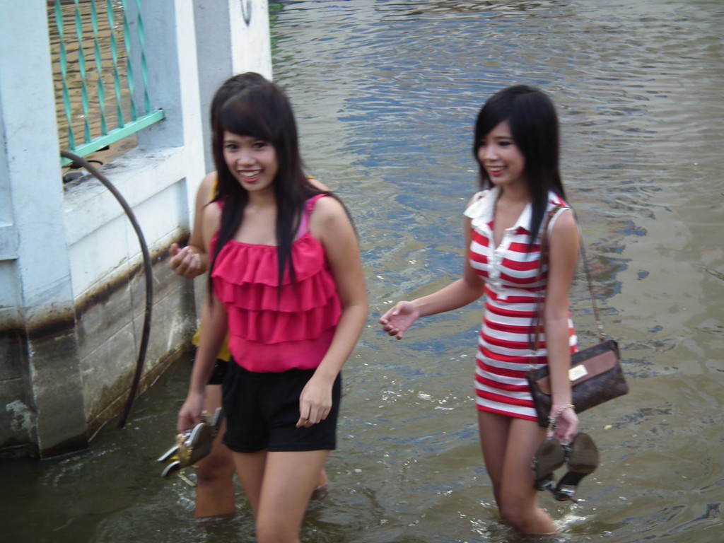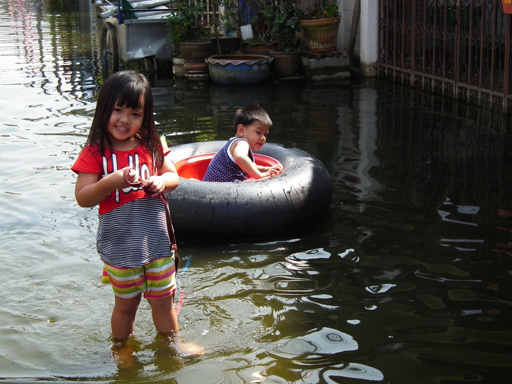 ผู้คนที่น้ำท่วมบ้านก็มาอยู่บนถนน และหน่วยแพทย์ก็ออกตรวจกันที่เต้นท์นั่นแหล่ะ
