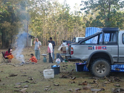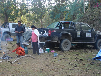 ล้างหน้าล้างตาด้วยกาแฟ งานนี้ไม่มีป้าศรีมาทอดปลาท่องโก๋ให้กิน ไม่มีพี่ยกมาชงกาแฟลาว เลยอาศัยกาแฟเนสที่พกพาไปจากบ้านเราครับ ได้พี่ต้อง (รถออฟโรด SR5 สีแดง)เจ้าถิ่น ซึ่งเป็นเพื่อนกับพี่เสือหอบปลาท่องโก๋กับน้ำเต้าหู้มาให้ ขอบพระคุณอย่างสูงครับ นี่แหละน้ำใจพวกเราชาวออฟโรด อยู่ที่ไหนไม่มีอด