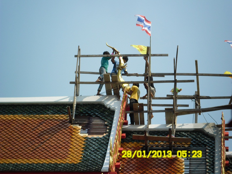ครับเสี่ยเอกเริ่มปิดทองช่อฟ้าครับเพื่อเป็นศิริมงคลครับ