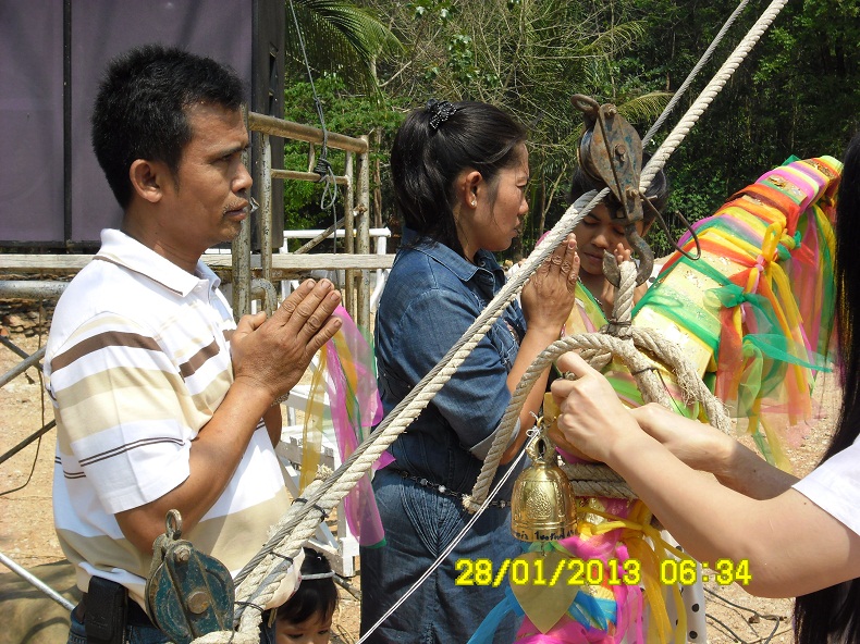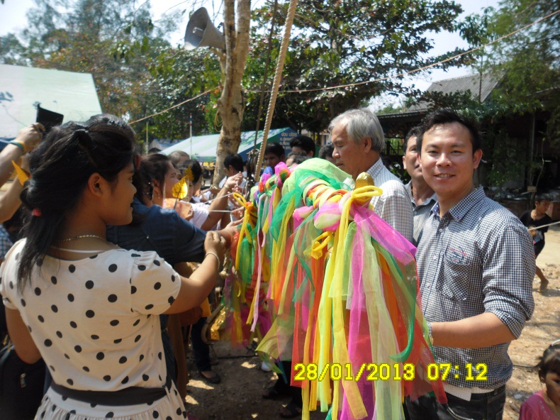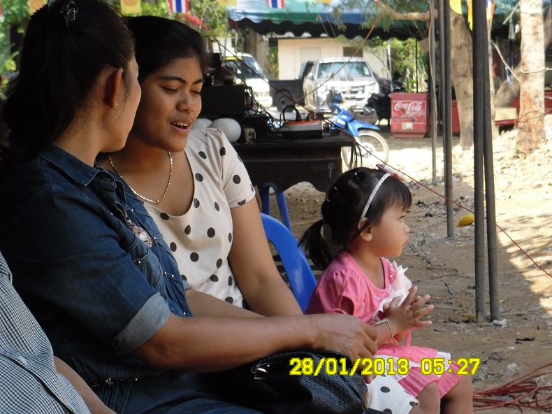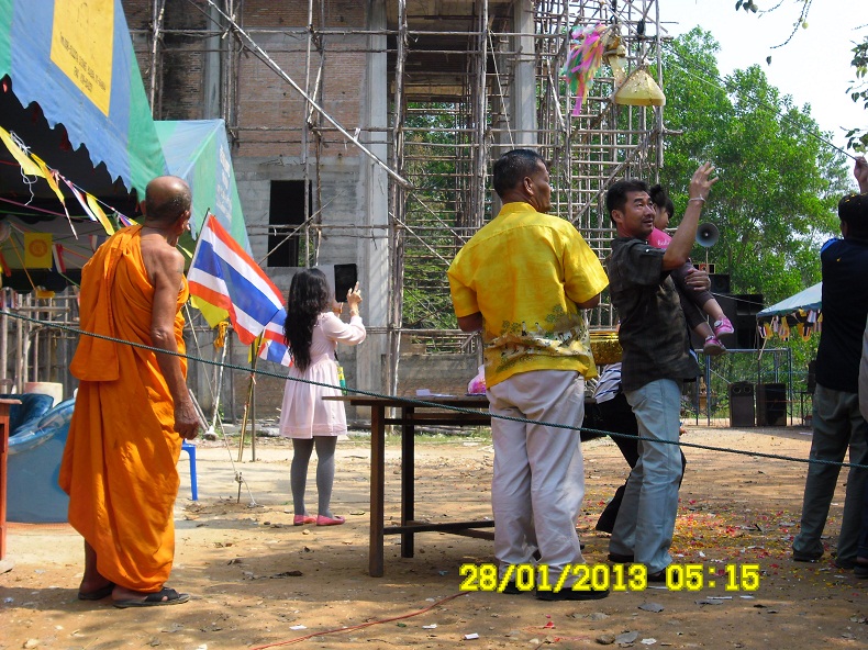 อิ่มแล้วก็มานั่งรอพิธียกช่อฟ้าต้นรองครับ