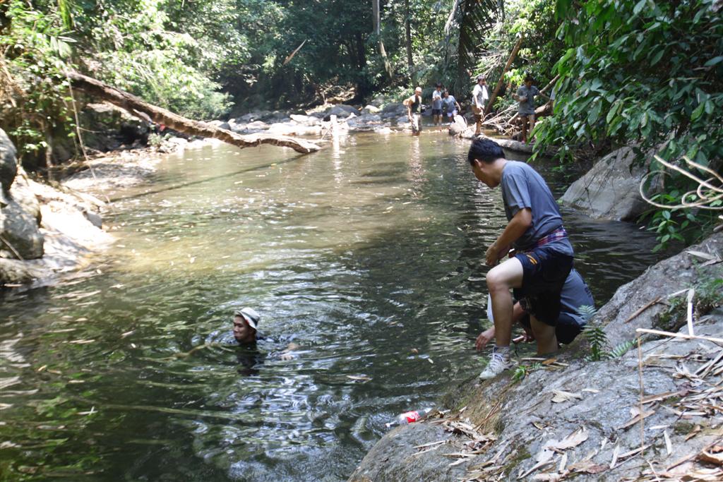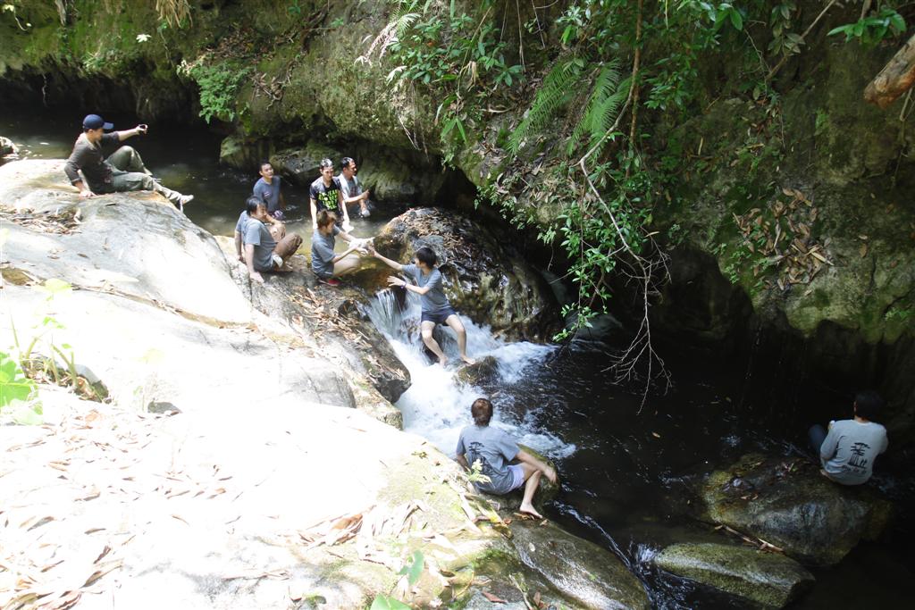 พอใกล้น้ำตกน้ำจะลึกแทบมิดหัว ต้องประคองตัวเองกับอุปกรณ์ให้ดี